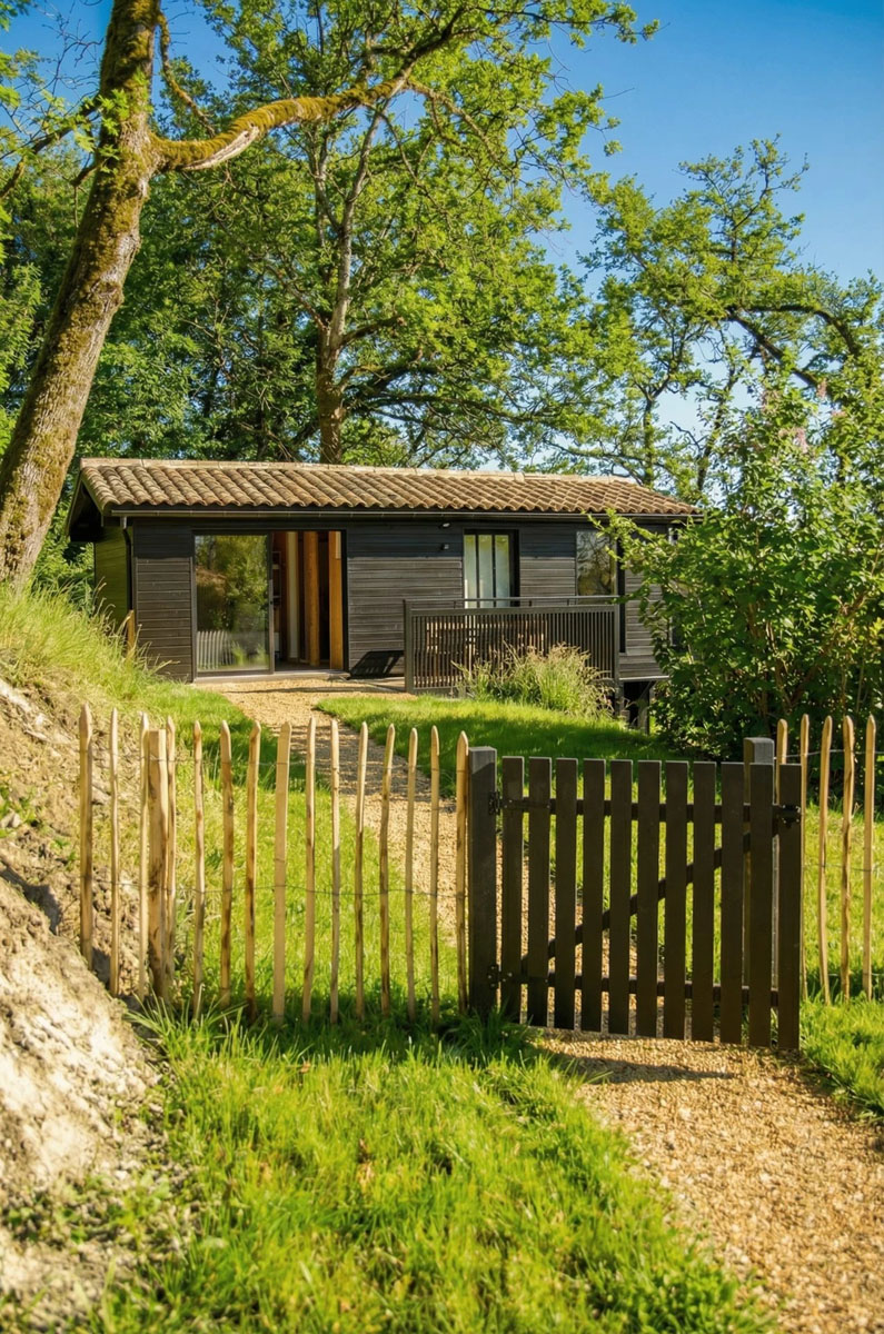 Installée sur pilotis au milieu des arbres (du gascon chancat, « fiché sur pilotis »), cette cabane insolite dans le Gers est pensée comme un véritable cocon romantique. Son design élégant, son atmosphère chaleureuse et le calme environnant en font un lieu unique pour un week-end en amoureux et une expérience hors du temps.