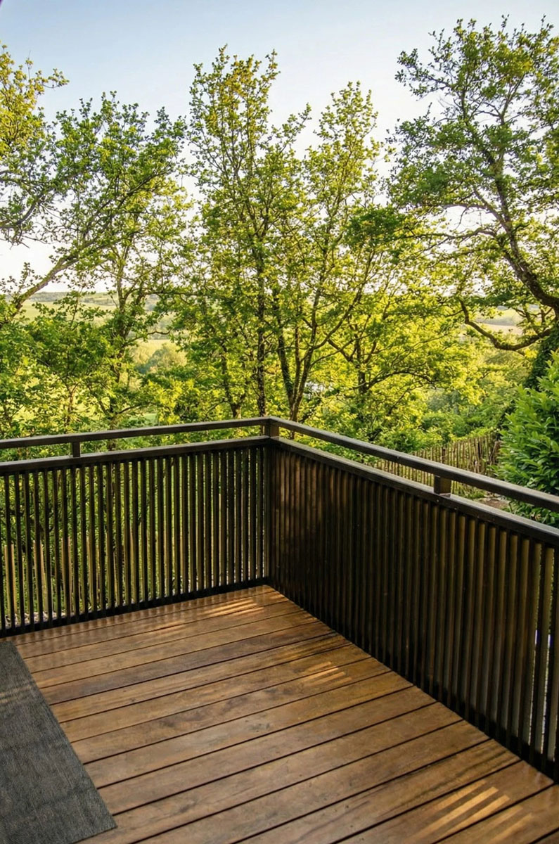 - terrasse suspendue avec vue sur la nature, parfaite pour un apéritif romantique