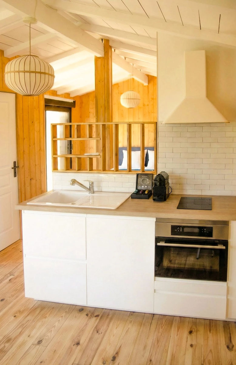 - cuisine équipée (réfrigérateur, plaque à induction, four, machine à café)